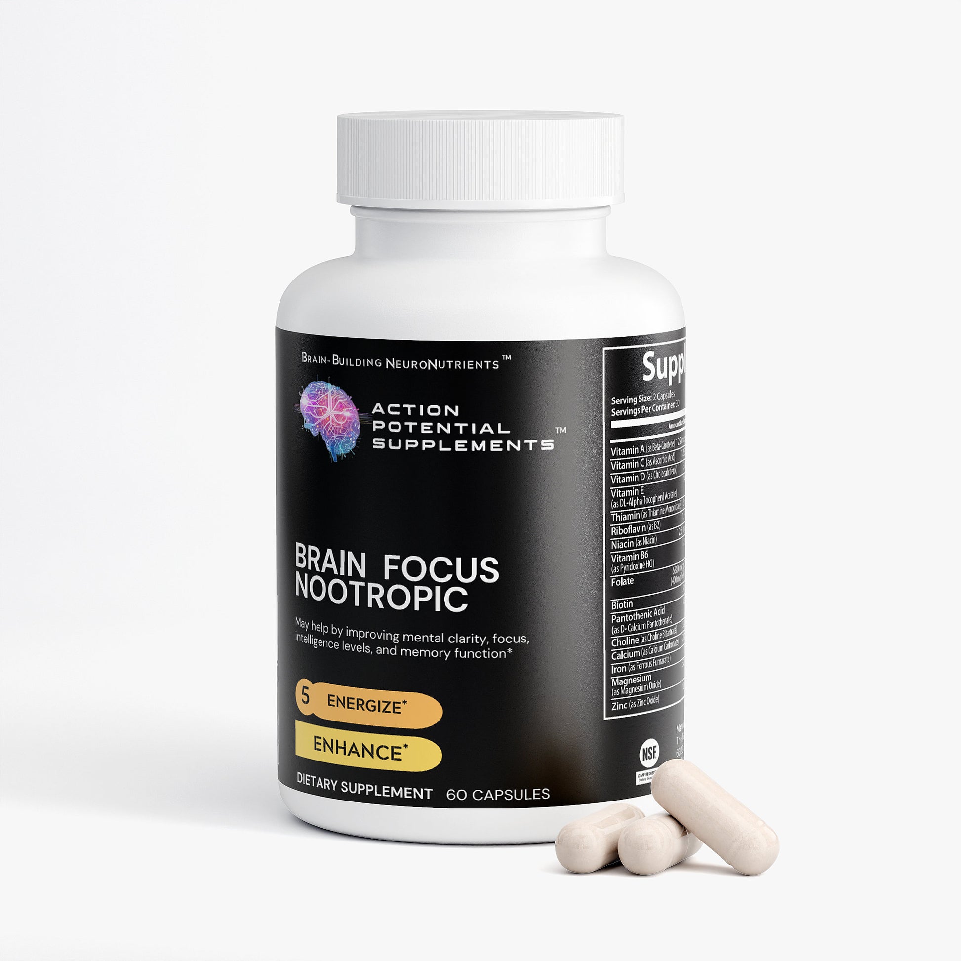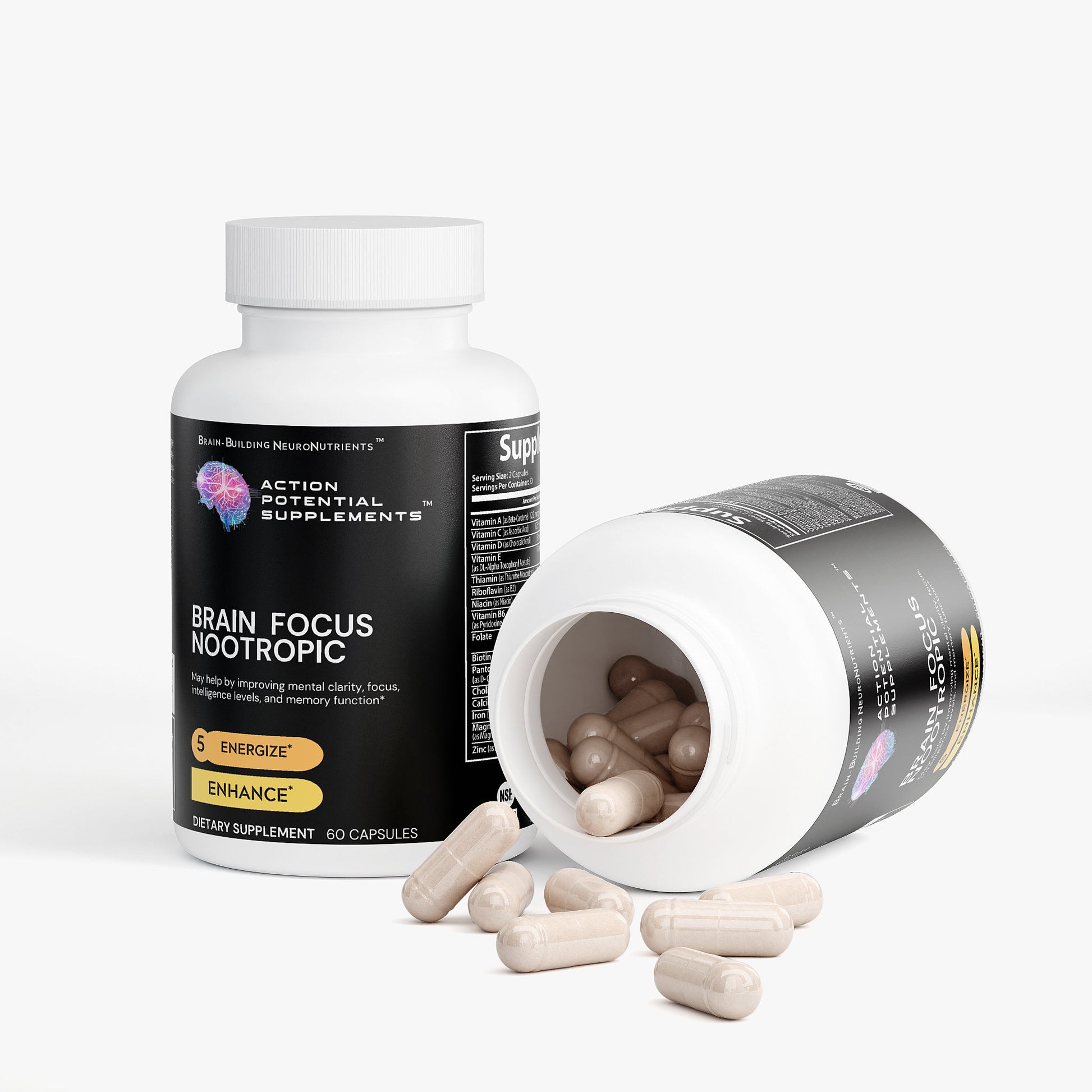 Keep your focus sharp and energy high with our natural Nootropic Brain and Focus Formula.