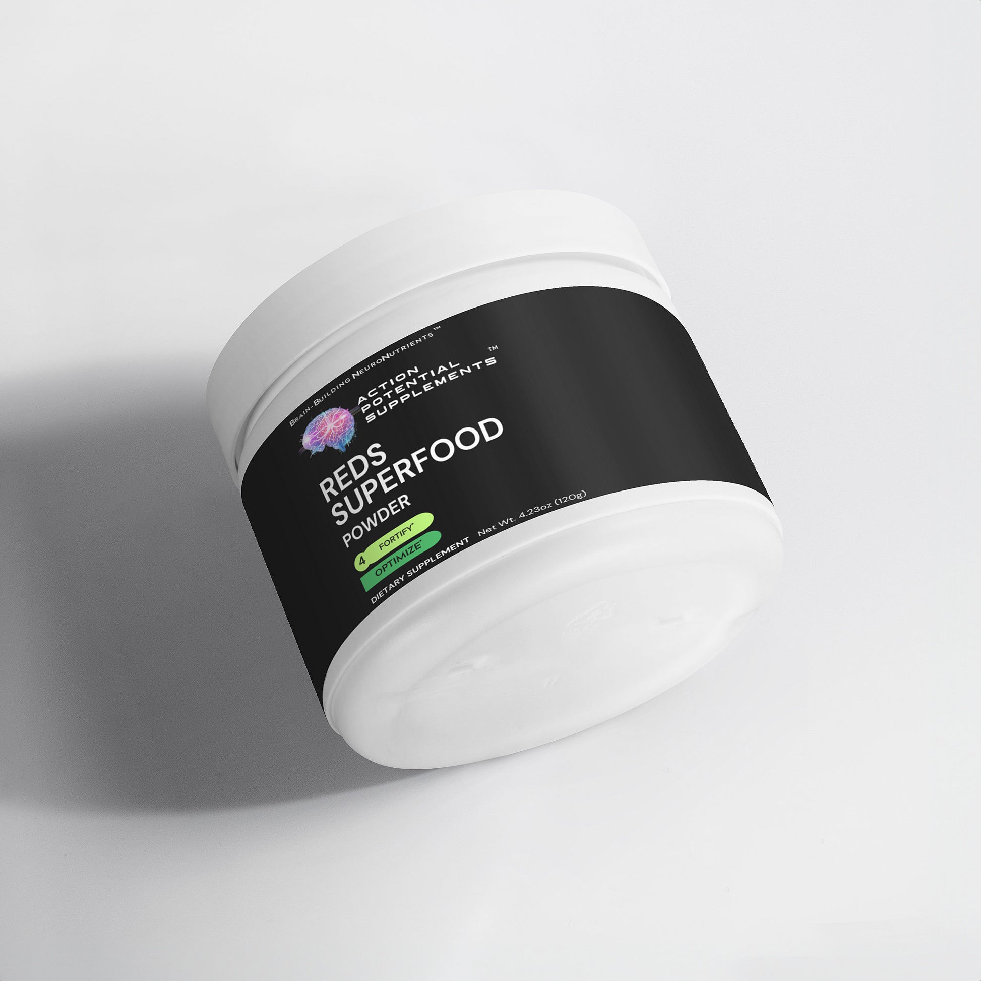 This reds powder supplement offers a rich blend of fruits, vegetables, and botanicals aimed at delivering antioxidants, fiber, and essential nutrients for overall health. The formula includes Beet Root, Strawberry Juice, Hibiscus, and a variety of other nutrient-dense ingredients like Acai Juice Powder and Cranberry Powder, designed to support optimal wellness. With a content of 120 grams, this supplement is perfect for daily consumption, providing a convenient way to boost your intake of vital nutrients and antioxidants to support health and vitality without the need for artificial additives.*